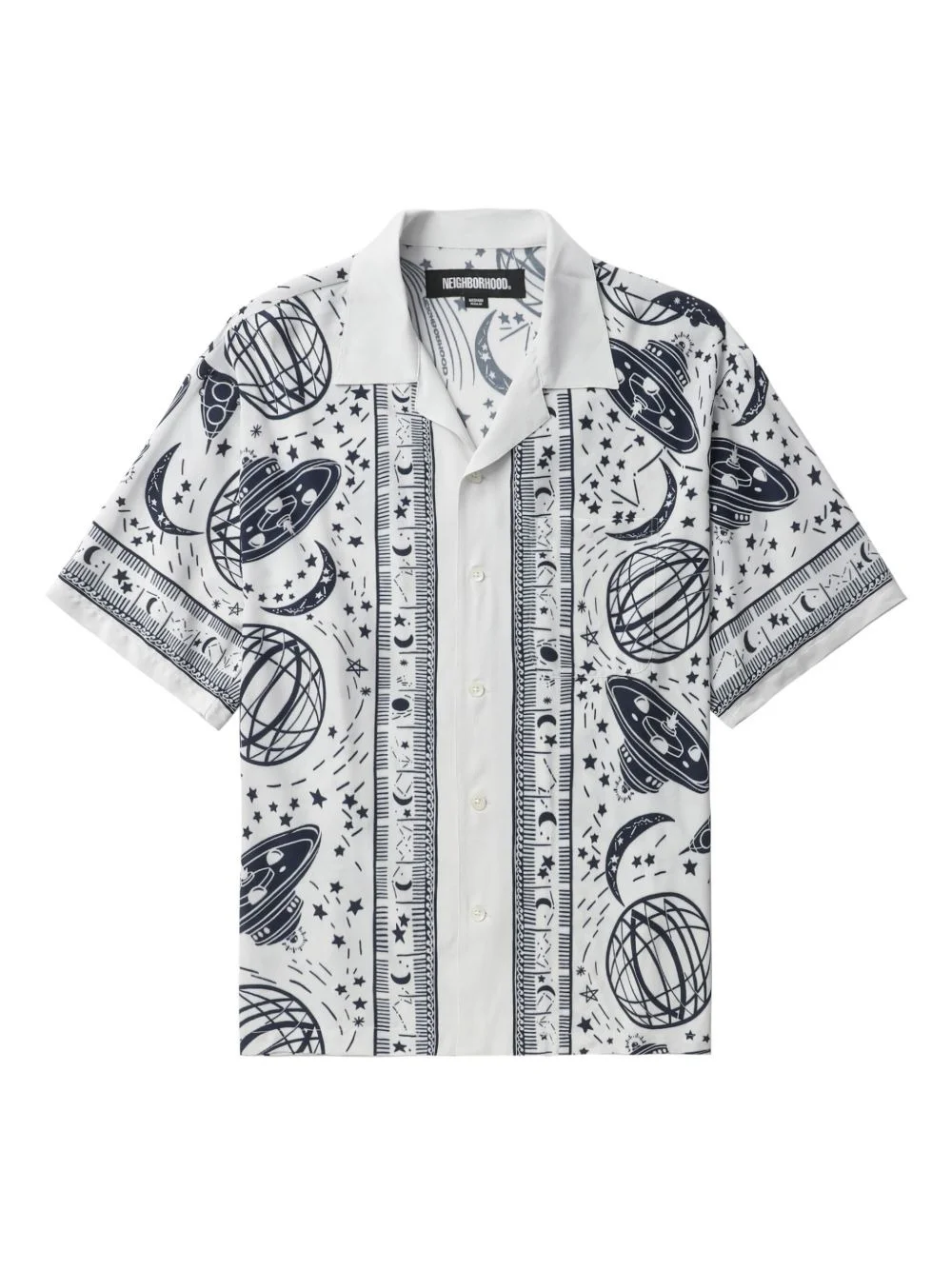 printed short-sleeve shirt Highlights - White - Celestial print - Short sleeves - Revere collar - Button fastening Imported Composition Rayon 100% Washing instructions Read Manufacturer Guidelines
