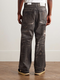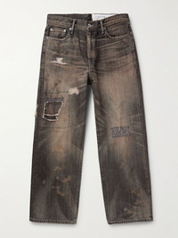 Neighborhood's 'Savage' jeans are intentionally distressed, faded, stained and embroidered to look like a well-loved vintage pair. They've been handmade in Japan from 12oz. selvedge denim and have a slouchy, wide-leg shape. Size & Fit - Fits true to size. Take your normal size - Wide leg, low-crotch style - Mid-weight, non-stretchy fabric - Model is shown wearing a M - Model measures: chest 38"/ 96cm, height 6'1"/ 185cm Details & Care - Black selvedge denim - Button and zip fastening - 100% cotton; trim: 100% leather (Cow) - Hand wash