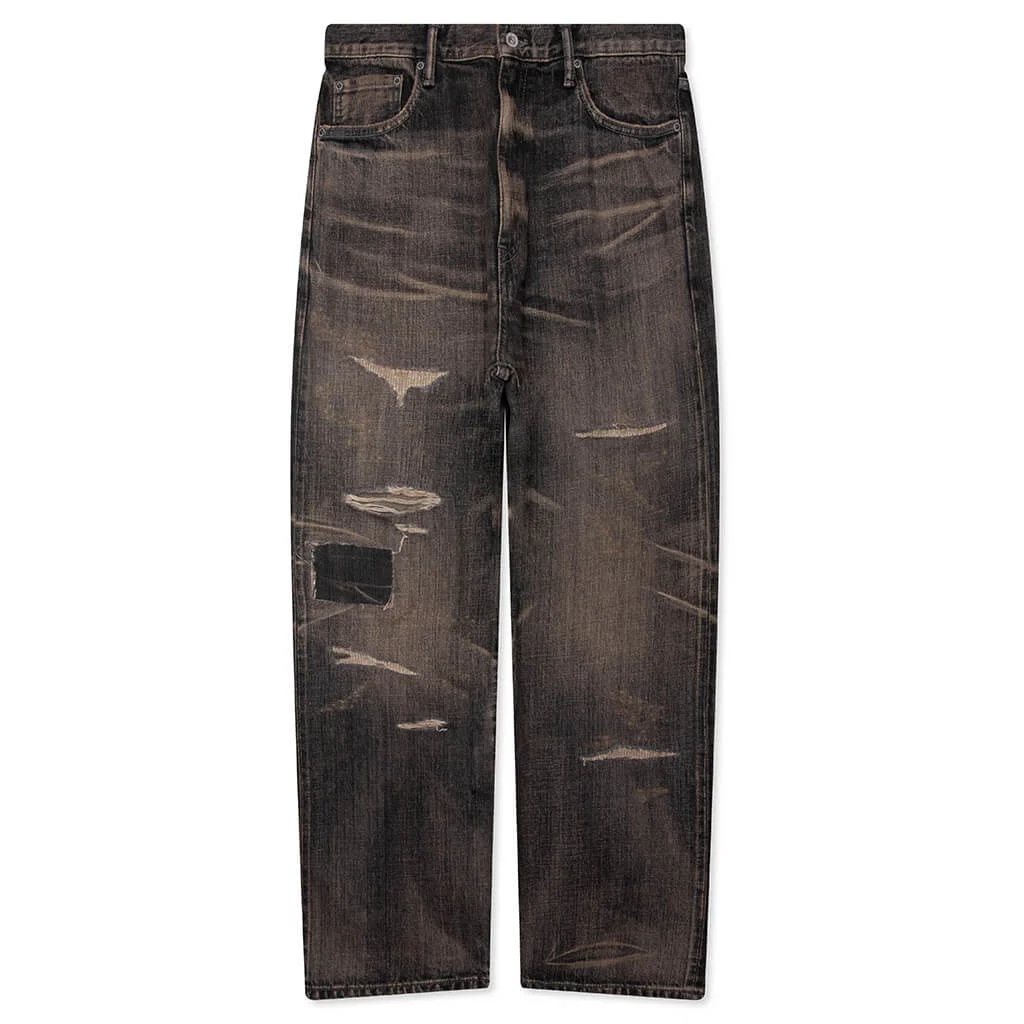 The Savage DP Basic Denim Pants bring a rugged, lived-in look to classic denim. Made from cotton selvedge cotton selvedge denim, these pants undergo multiple aging processes, featuring heavy whiskering, fading, and distressed details at the front and rear. Designed to have a relaxed fit with a slightly tapered leg opening, the silhouette is completed with a zip-fly and traditional 5-pocket styling. - 100% Cotton - Relaxed fit - Slightly tapered leg opening - Zip-fly with button closure - 5-pocket styling - Heavy whiskering details - Fading and distressing - 'N'-shaped stitching on back pockets - Brand tag - Leather patch - Style No: 252XBNH-PTM08-BLK