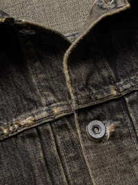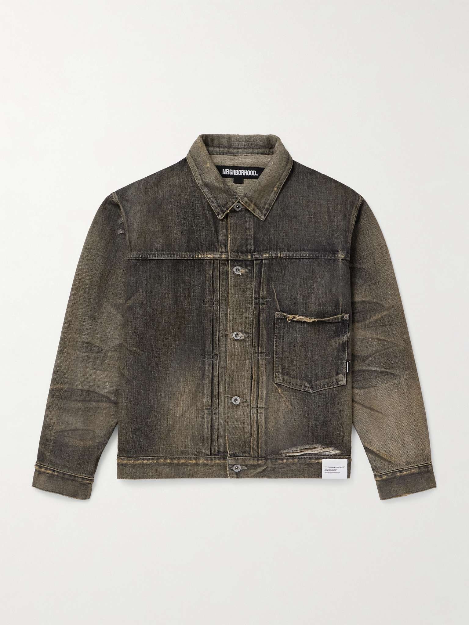 Neighborhood's 'Savage Type-1' jacket is named after its distressing - the rip-and-repair finish gives it a cool, DIY feel. It's been made in Japan from 12oz. denim and has an adjustable buckled tab at the back. Add a little character and pin some badges at the collar.< Size & Fit - Fits true to size, however those who are between sizes should take the larger size - Designed for a boxy fit - Dropped shoulder seam - Mid-weight, non-stretchy denim - Model is shown wearing a M - Model measures: chest 36"/ 92cm, height 6'0"/ 183cm Details & Care - Tonal-grey denim - Button fastenings - 100% cotton - Machine wash or dry clean