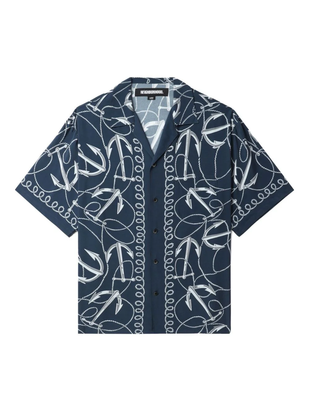 short-sleeve shirt Highlights - Navy blue - Short sleeves - Button fastening Imported Composition Rayon 100% SIZE & FIT FittingInformation Designed to be unstructured, offering a loose fit throughout Made from a lightweight non-stretch fabric Washing instructions Read Manufacturer Guidelines