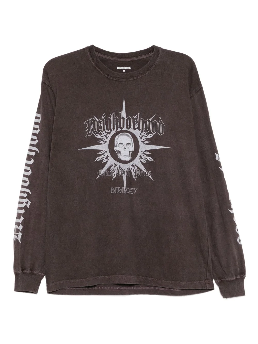 skull graphic T-shirt Highlights - Cedar brown - Long sleeves - Round neck Imported Composition Body: Cotton 100% Washing instructions Machine Wash