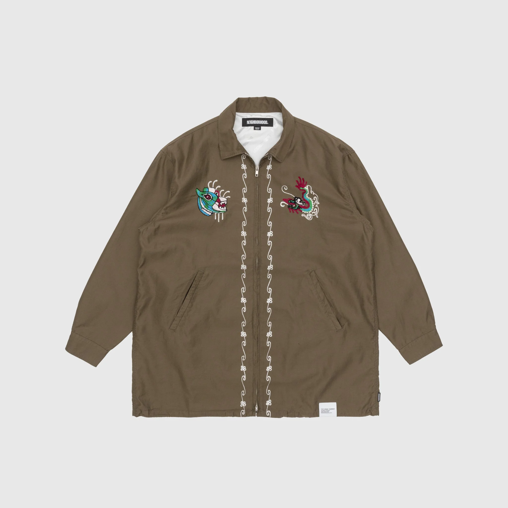 - 232AQNH-SHM05-OLV - Olive - 55% Cotton,45%Lyocell - Lining: 100% Polyester - Front zip closure - Embroidered graphic at the chest - Two front slanted pockets - Adjustable button cuffs - Adjustable drawstring hem - Woven label at the hem