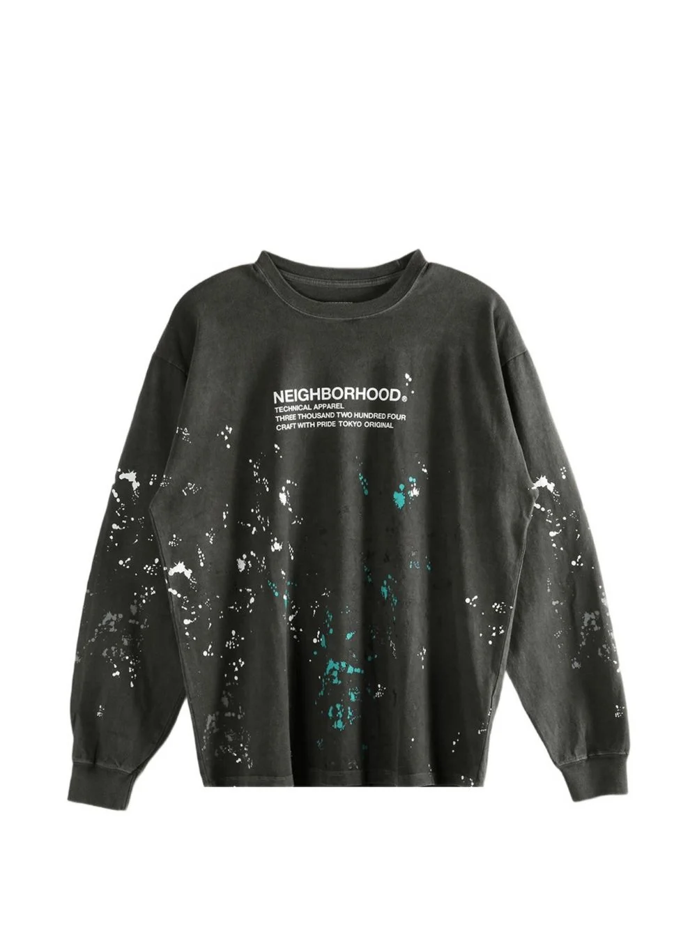 splatter-paint long-sleeve sweatshirt Highlights - Black - Splatter-paint effect - Round neck - Long sleeves Made in United States Composition Cotton 100% Washing instructions Read Manufacturer Guidelines