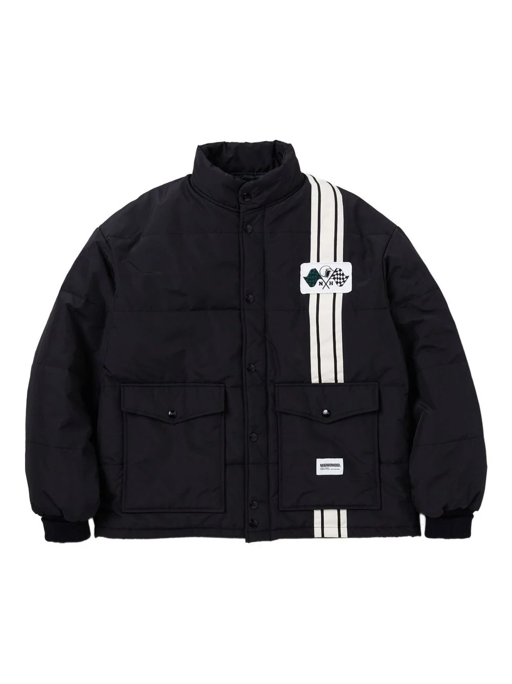 stripe-detail padded jacket Highlights Imported Composition Polyester 100%