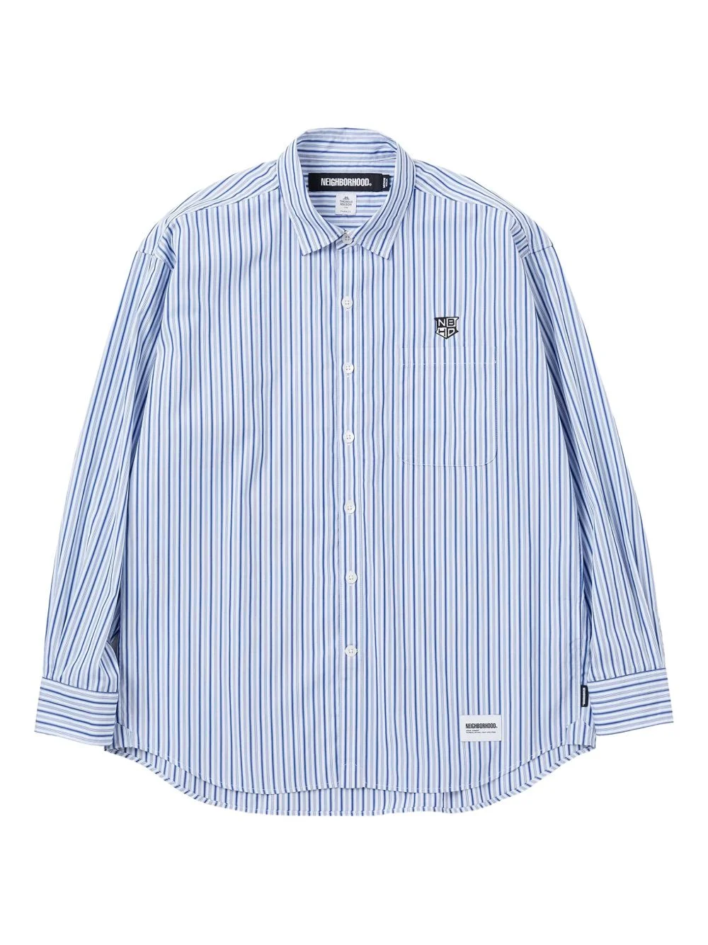 stripe-pattern embroidered shirt Highlights - Light blue - Vertical stripes - Embroidered logo - Long sleeves - Button fastening - Chest pocket Imported Composition Cotton 100% Washing instructions Read Manufacturer Guidelines