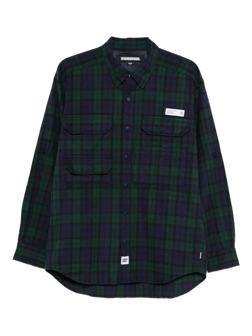tartan-check shirt Highlights - Green/navy - Tartan check pattern - Chest pockets - Long sleeves - Press-stud fastening - Logo patch Imported Composition Cotton 100% Washing instructions Machine Wash
