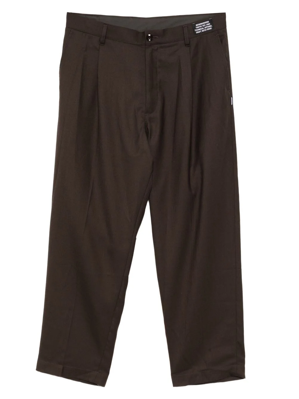tucked trousers Highlights - Front button and zip fastening - Two side slash pockets - Two rear welt pockets - Belt loops Imported Composition Polyester 50%, Wool 50% Washing instructions Machine Wash