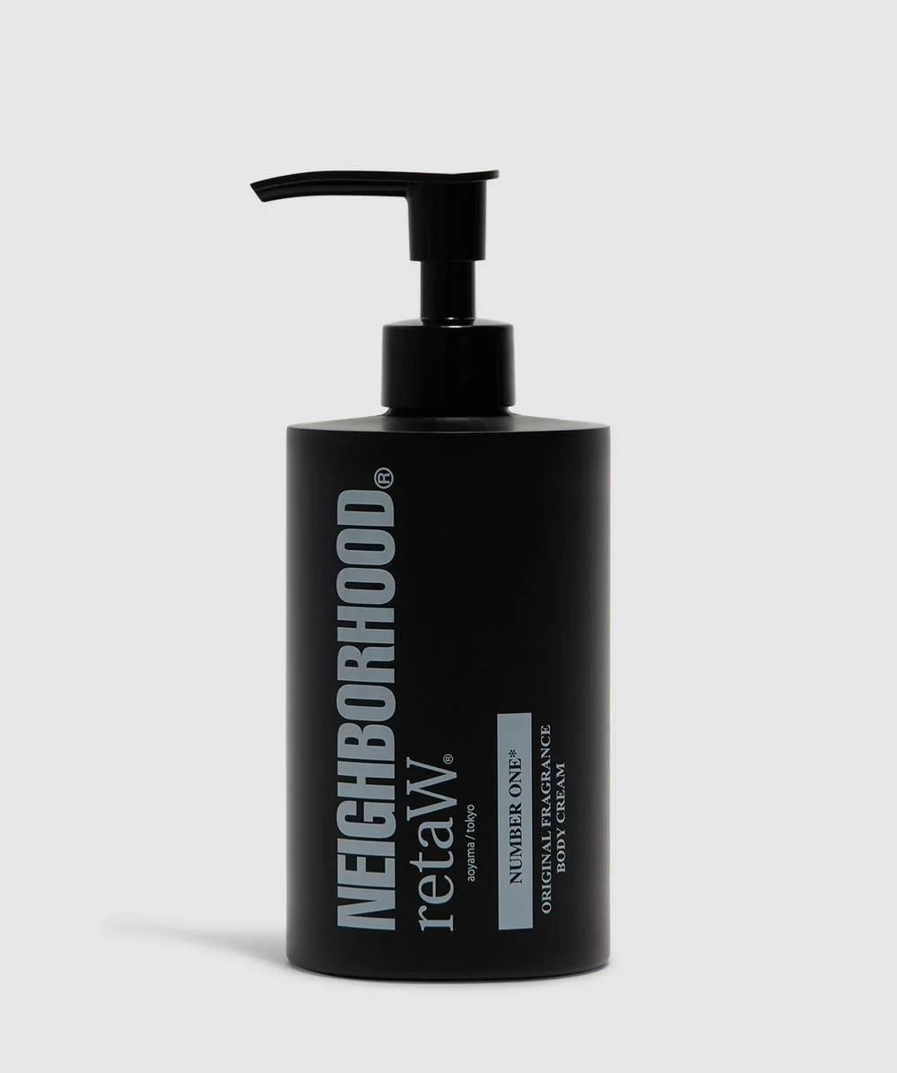 Discover the latest Neighbourhood x Retaw collaboration, crafted with natural ingredients, the Number one body cream is unmatched for hydration and skin health. • Plastic hand-pump bottle • Key notes: patchouli, bergamot • Printed label branding • Made in Japan • 320ml • Item code: 251BDREN-AC07 Product Information • 4116422