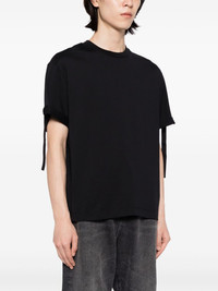 buckle-strap cotton T-shirt Highlights - Black - Cotton - Crew neck - Drop shoulder - Short sleeves - Two buckle-strap fastenings - Straight hem Imported Composition Cotton 100% SIZE & FIT Model measurements Height 6 ft 2 in(1.87 m) Bust/Chest 33.07 in(84 cm) Hips 35.43 in(90 cm) Waist 26.77 in(68 cm) FittingInformation Designed for a boxy fit, intended for a loose fit throughout Made from a midweight non-stretch fabric, this piece offers minimal elasticity when worn This piece fits true to size – take your usual size