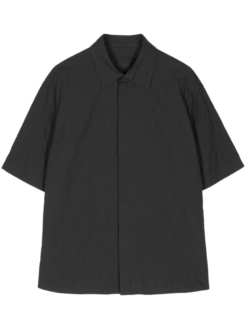 crinkled cotton shirt Highlights - Dark grey - Stretch-cotton - Crinkled finish - Classic collar - Concealed front button fastening - Drop shoulder - Short sleeves - Straight hem Imported Composition Cotton 99%, Elastane 1% Washing instructions Machine Wash