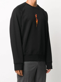 flames logo print sweatshirt Be ready to hit the streets in style with this cool black sweatshirt from Nail Barrett. The flame print on the front and back, won't let you get unnoticed. Uff, It's getting hot in here! Highlights - Black - Cotton-blend - Crew neck - Long sleeves - Straight hem - Loose fit - Star print - Thunderbolt print Made in Italy Composition Cotton 65%, Polyester 35% SIZE & FIT Model measurements Height 6 ft 1 in(1.85 m) Bust/Chest 37.79 in(96 cm) Hips 37.4 in(95 cm) Waist 30.7 in(78 cm) FittingInformation This piece fits true to size. We recommend you get your regular size Cut for a relaxed fit Made with a mid-weight fabric Washing instructions Machine Wash