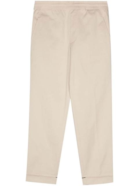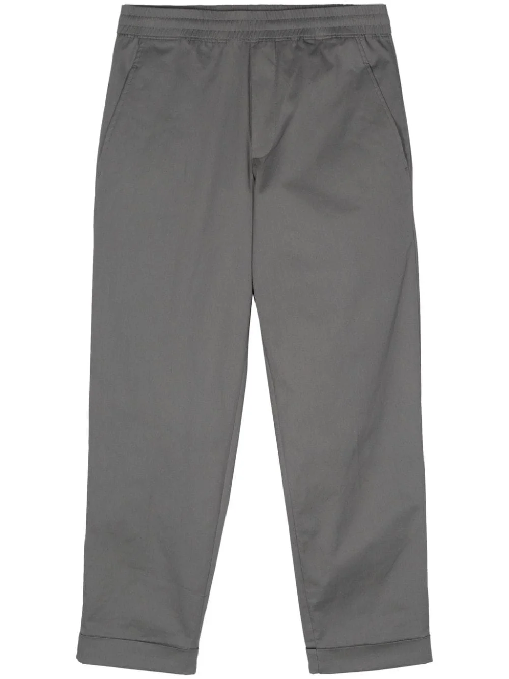 low-waist slim-fit trousers Highlights - Cool grey - Cotton blend - Low waist - Slim cut - Elasticated waistband with internal drawstring - Two diagonal pockets to the sides - Two rear button-fastening pockets - Turn-up cuffs Imported Composition Outer: Cotton 49%, Nylon 46%, Elastane 5% Lining: Polyester 80%, Cotton 20%