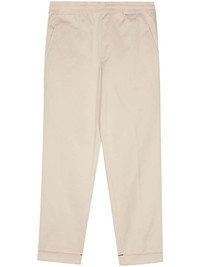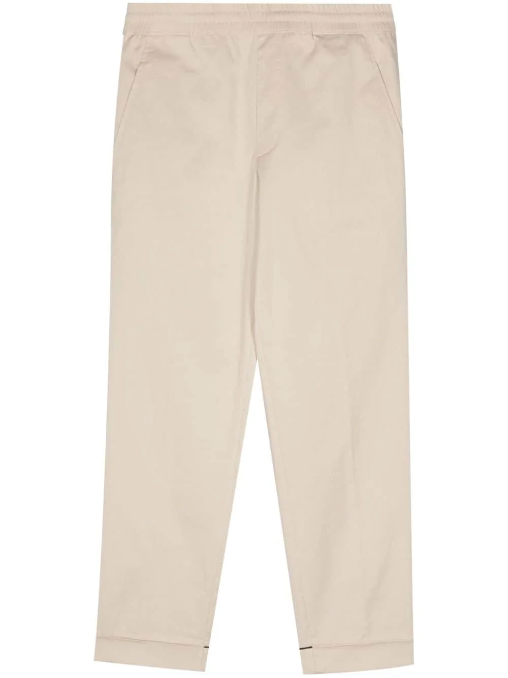 low-waist slim-fit trousers Highlights - Sand beige - Cotton blend - Low waist - Slim cut - Elasticated waistband with internal drawstring - Two diagonal pockets to the sides - Two rear button-fastening pockets - Turn-up cuffs Made in Italy Composition Outer: Cotton 49%, Nylon 46%, Elastane 5% Lining: Polyester 80%, Cotton 20%