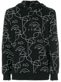 Siouxsie printed hoodie Neil Barrett's AW17 collection pays homage to ‘80s artists such as Siouxsie and the Banshees, with Siouxsie's visage appearing throughout. Seen here as a striking white graphic printed outline, Siouxsie's face covers the exterior of this garment. Fashioned from a crisp cotton blend in Italy, this black artistic Siouxsie printed hoodie from Neil Barrett features a drawstring hood, long sleeves, a ribbed hem and cuffs. Made in Italy Composition Cotton 100%, Viscose 95%, Spandex/Elastane 5% SIZE & FIT Model measurements Height 6 ft 2 in(1.87 m) Bust/Chest 33.85 in(86 cm) Hips 35.82 in(91 cm) Waist 29.52 in(75 cm) Washing instructions Machine Wash