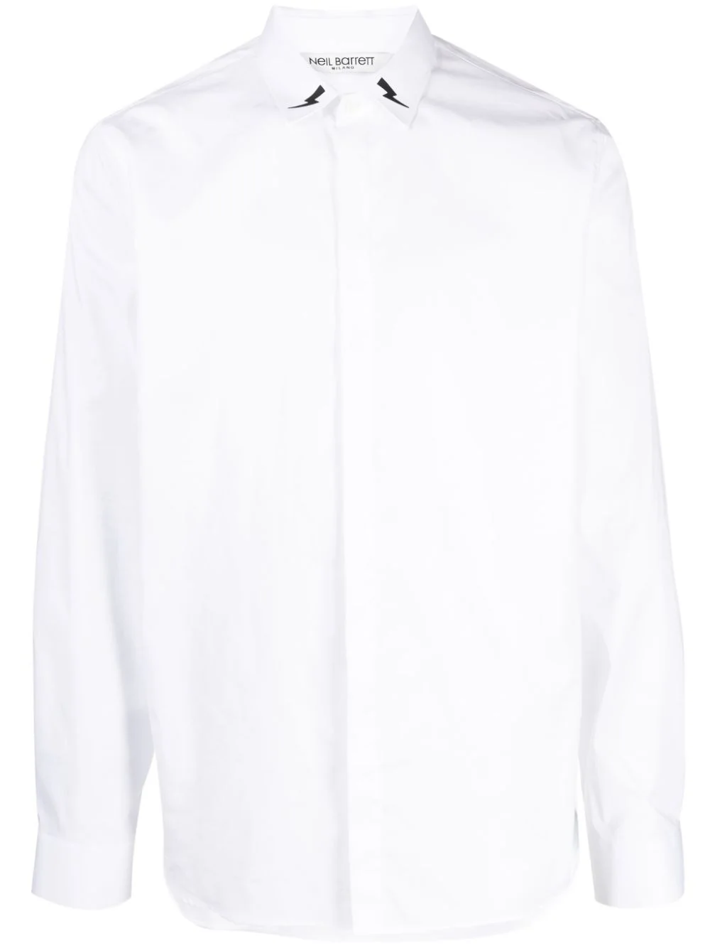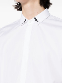 Thunderbolt-print cotton shirt Highlights - White - Cotton - Tonal stitching - Signature thunderbolt print - Classic collar - Concealed front button fastening - Long sleeves - Buttoned cuffs - Curved hem Made in Italy Composition Body: Cotton 100% Trims: Cotton 65%, Polyamide 29%, Elastane 6% SIZE & FIT Model measurements Height 6 ft 2 in(1.87 m) Bust/Chest 33.07 in(84 cm) Hips 35.43 in(90 cm) Waist 26.77 in(68 cm) FittingInformation Designed for a regular fit, allowing for a comfortably loose fit throughout the body Made from a midweight non-stretch fabric This piece fits true to size – take your usual size Washing instructions Machine Wash
