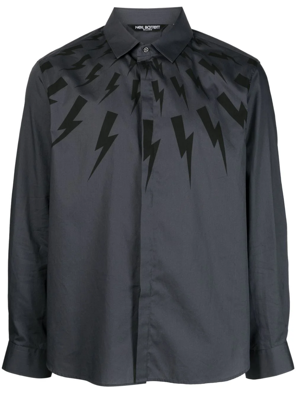 Thunderbolt-print cotton shirt Highlights - Dark grey - Cotton - Signature thunderbolt print - Concealed front button fastening - Classic collar - Long sleeves - Buttoned cuffs - Straight hem Made in Italy Composition Cotton 100% SIZE & FIT Model measurements Height 6 ft 4 in(1.92 m) Bust/Chest 37.4 in(95 cm) Hips 37.4 in(95 cm) Waist 30.7 in(78 cm) FittingInformation Designed for a regular fit, allowing for a comfortably loose fit throughout the body Made from a midweight non-stretch fabric This piece fits true to size – take your usual size Washing instructions Machine Wash