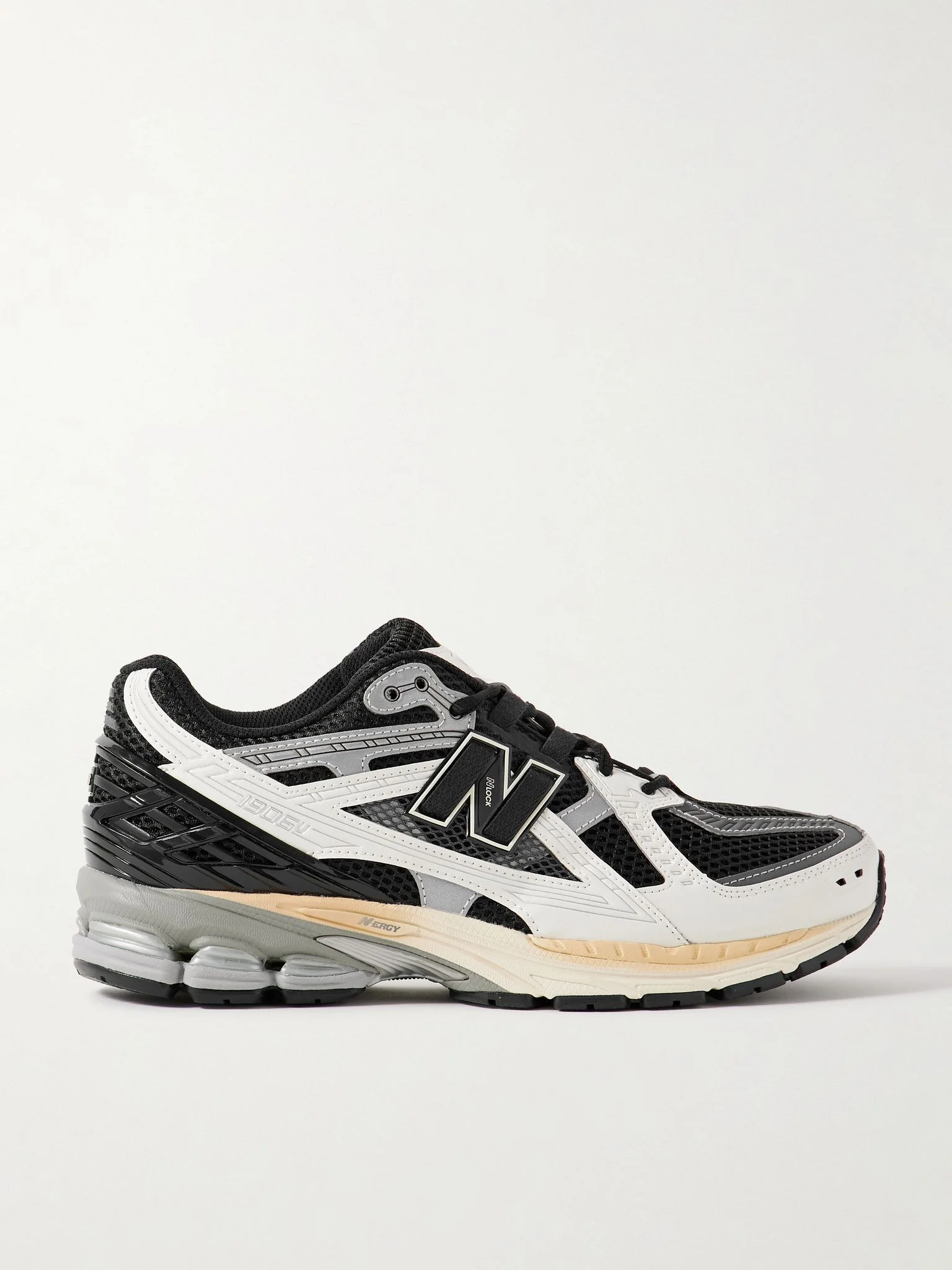 New Balance's '1906' sneakers are a nod to the brand's founding year. This pair is made from mesh and traced with white, silver and black synthetic strips. The bouncy rubber soles and 'NLOCK' lacing system provide comfort and support. Size & Fit Fits true to size, please refer to New Balance size guide below: - UK 5 = US 5.5/ EU 38 - UK 5.5 = US 6/ EU 38.5 - UK 6 = US 6.5/ EU 39.5 - UK 6.5 = US 7/ EU 40 - UK 7 = US 7.5/ EU 40.5 - UK 7.5 = US 8/ EU 41.5 - UK 8 = US 8.5/ EU 42 - UK 8.5 = US 9/ EU 42.5 - UK 9 = US 9.5/ EU 43 - UK 9.5 = US 10/ EU 44 - UK 10 = US 10.5/ EU 44.5 - UK 10.5 = US 11/ EU 45 - UK 11 = US 11.5/ EU 45.5 - UK 11.5 = US 12/ EU 46.5 - UK 12 = US 12.5/ EU 47 - UK 12.5 = US 13/ EU 47.5 - UK 13.5 = US 14/ EU 49 - Packaging reflects both men’s and women’s sizing Details & Care - Black mesh, white, silver and black synthetic material - Lace-up - Designer colour: Black/ Sea Salt/ Magnet - Style number: U1906NC - New Balance follows its own size guide, therefore the size stated on the box will differ from the one provided in our size chart. To receive your correct fit, please refer to Size & Fit notes