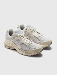 - New Balance - 2002R - Leather and mesh upper - Lace-up closure - Padded collar - ABZORB SBS heel cushioning - N-ergy outsole - Color: White/Sea Salt/Raw Cashew - Material: Leather, Mesh, Rubber - See more Sneakers and Shoes