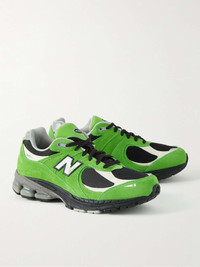 The streamlined profile of New Balance's '2002R' sneakers is inspired by retro running shoes. Made from panels of 'Green Apple' suede, mesh and leather, they have cushioning ABZORB midsoles and Stability Web technology for comfort and arch support throughout the day. Size & Fit - UK 5 = US 5.5/EU 38 - UK 5.5 = US 6/EU 38.5 - UK 6 = US 6.5/EU 39.5 - UK 6.5 = US 7/EU 40 - UK 7 = US 7.5/EU 40.5 - UK 7.5 = US 8/EU 41.5 - UK 8 = US 8.5/EU 42 - UK 8.5 = US 9/EU 42.5 - UK 9 = US 9.5/EU 43 - UK 9.5 = US 10/EU 44 - UK 10 = US 10.5/EU 44.5 - UK 10.5 = US 11/EU 45 - UK 11 = US 11.5/EU 45.5 - UK 11.5 = US 12/EU 46.5 - UK 12 = US 12.5/EU 47 - UK 12.5 = US 13/EU 47.5 - UK 13.5 = US 14/EU 49 - Fits true to size. Take your normal size Details & Care - Green suede (Pig), black mesh, white and silver leather - Lace-up - Designer colour: Green Apple/ Phantom - Style number: M2002RGZ - New Balance follows its own size guide, therefore the size stated on the box will differ from the one provided in our size chart. To receive your correct fit, please refer to Size & Fit notes