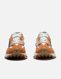- New Balance - 327 - Textile upper with suede overlays - Lace-up closure - Branded tongue - Oversized N branding - Padded collar - Rubber heel wrap - Treaded rubber outsole - Color: Cayenne/Vintage Indigo - Style Code: U327WEJ - Material: Textile, Suede, Rubber - See more Sneakers and Shoes