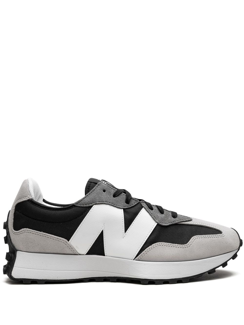 327 panelled sneakers The New Balance 327 sneakers provide nothing less than a complete reimagination of the brand's running heritage. Featuring an angular reworking of the tried-and-true wedge silhouette it sheds new light on the ‘70s styles. Highlights - Black/white - Canvas/suede - Panelled design - Logo print to the side - Front lace-up fastening - Round toe - Rubber sole - These styles are supplied by a premium sneaker marketplace. stocking only the most sought-after footwear, they source and curate some of the most hard to find sneakers from around the world. Imported Composition Outer: Suede 100% Sole: Rubber 100% Lining: Fabric 100% SIZE & FIT Measurement CIRCUMFERENCE 9.4 in(24 cm) HEIGHT 4.7 in(12 cm) Sole height 1.6 in(4 cm) WIDTH 4.7 in(12 cm)