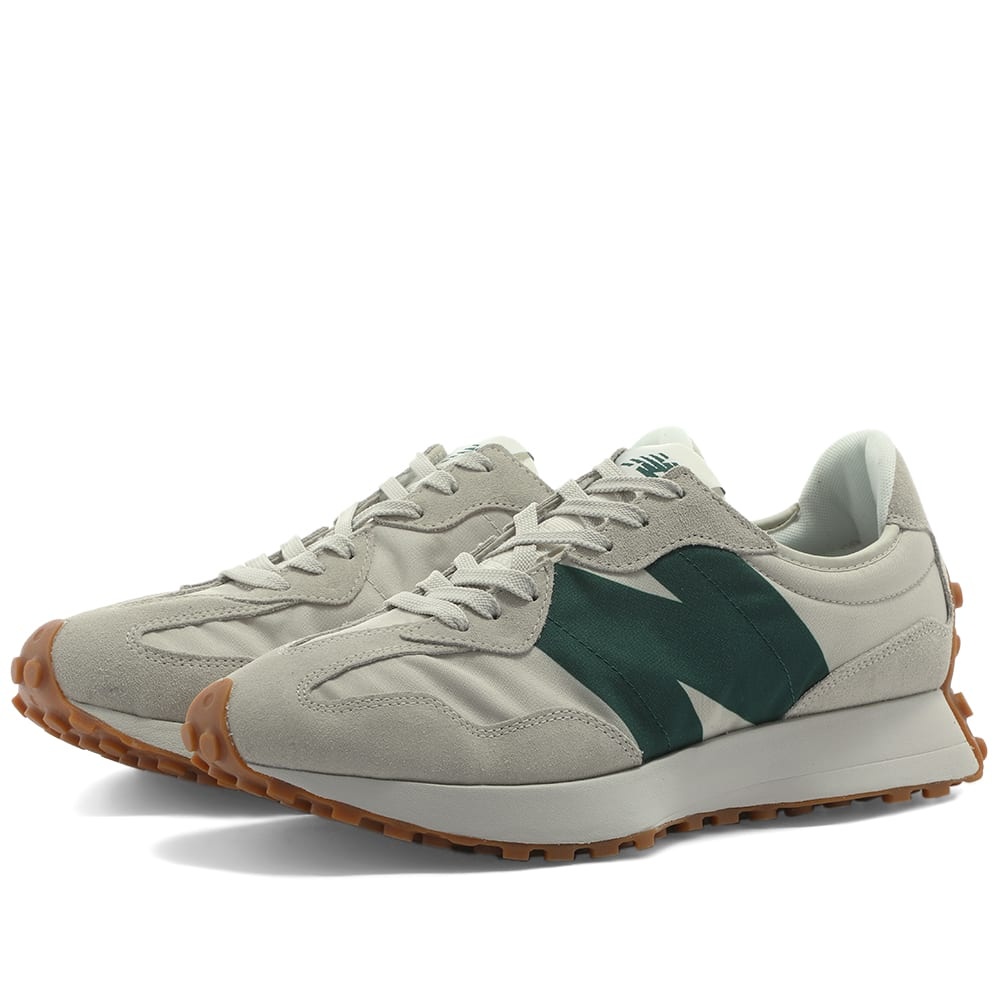 These New Balance 327 sneakers combine heritage ‘70s style with a grey and green colourway that’s perfect for any athleisure look. Made from a combination of textile and suede, they sit atop lugged soles with rubber that wraps around the heel and toe for a vintage look. - Textile Uppers - Suede Overlays - EVA Midsole - Rubber Outsole