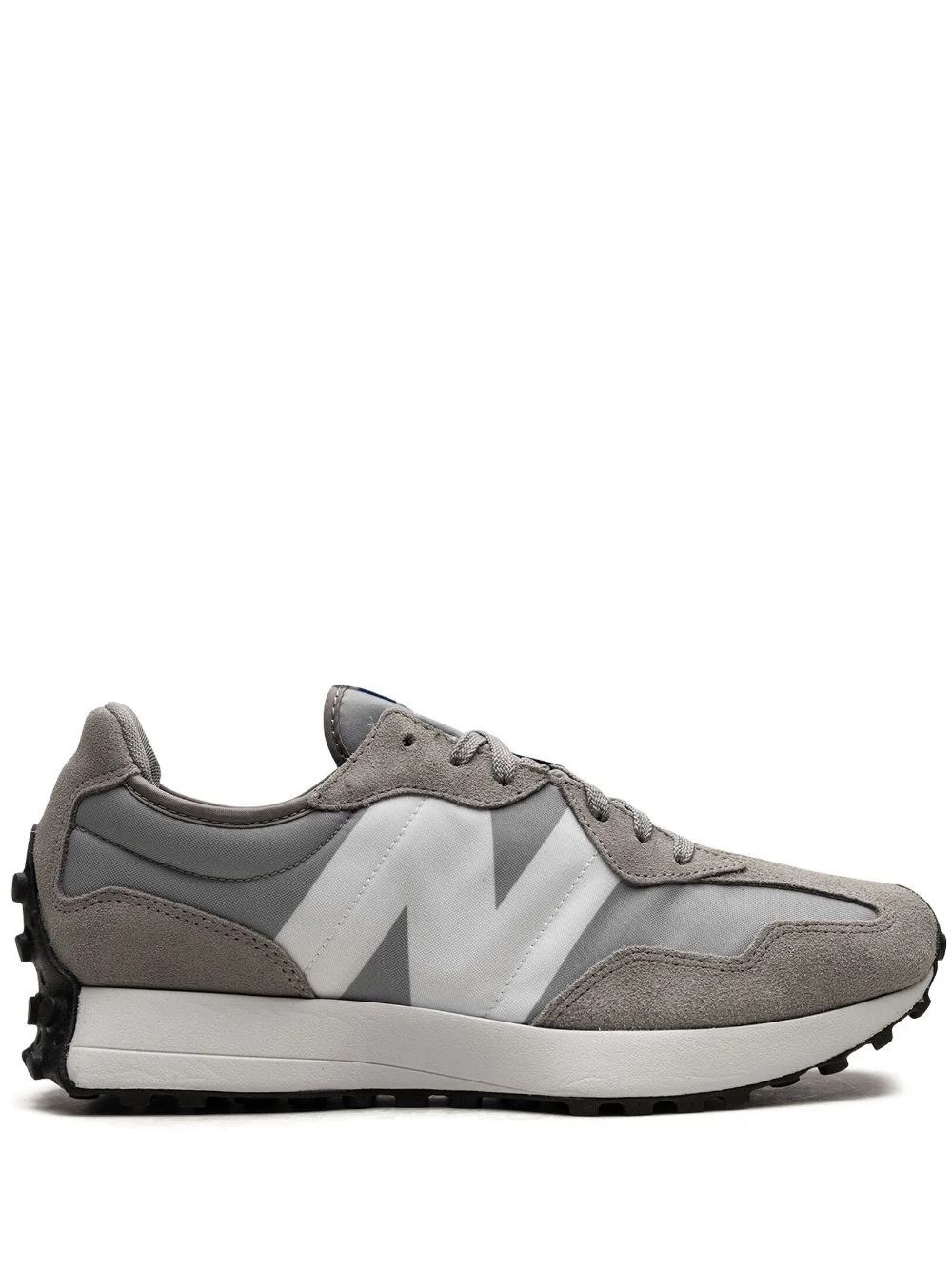 327 "Marblehead White" sneakers New Balances' 327 sneaker celebrates heritage '70s silhouettes in a fresh, exaggerated manner. They’re crafted from grey mesh and suede and defined by trail-inspired lug outsoles. Asymmetric 'N' logos emblazon the sidewalls in contrasting white. Highlights - Grey/white - Mesh panelling - Suede panelling - Logo print to the side - Round toe - Front lace-up fastening - Logo patch at the tongue - Mesh lining - Rubber sole - These styles are supplied by a premium sneaker marketplace. stocking only the most sought-after footwear, they source and curate some of the most hard to find sneakers from around the world. Imported Composition Suede 100% SIZE & FIT Measurement HEEL 1.57 in(4 cm) Sole height 0.98 in(2.5 cm)