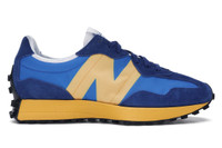 Featuring a mixture of color schemes in its classic design, the New Balance 327 Blue takes the profile of its forerunners. The sneaker arrives in a suede and leather upper with a touch of white on its collar and tongue, featuring a fang outline inspired by its predecessors. An augmented "N" emblem dressed in a mustard color fills the midfoot of the shoe, while the NB signature logo rest above the nylon tongue, and an "NB" text is printed on the heel counter. The EVA cushioned midsole in darker mustard sits on a black rubber outsole beneath. The New Balance 327 Blue was released on May 10th, 2020. It retailed at $100. - Style MS327CLB - Colorway Blue/White - Retail Price 100 - Release Date 2020-05-10 - Featured false