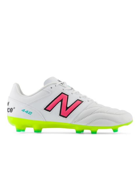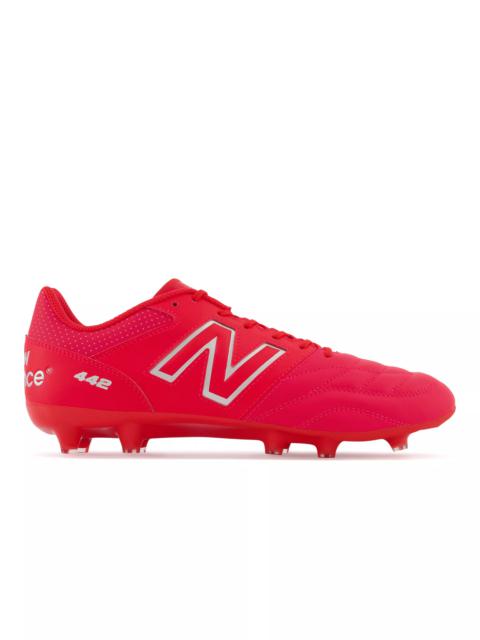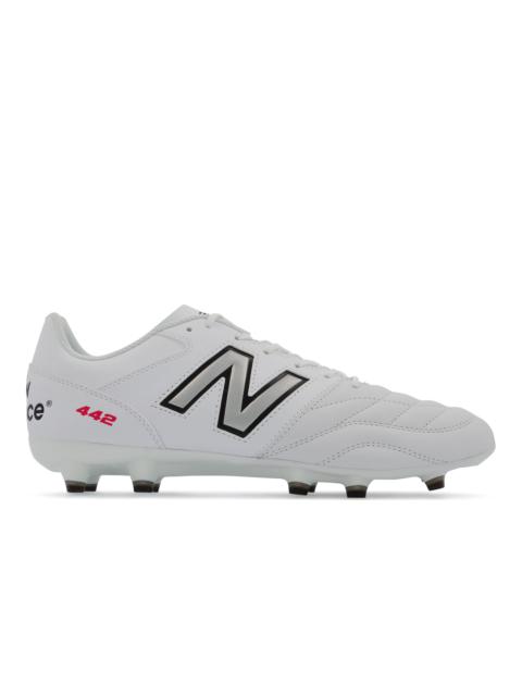 Crafted heritage meets modern performance in the 442 V2 Team FG soccer cleat. Boasting the perfect balance between form and function, this cleat features a premium full-grain leather upper and a lightweight TPU plate for long-lasting durability. The TPU stud tips on this firm ground cleat are specifically designed for use on firm ground pitches to help you optimize your performance, and an ultra-comfortable internal lining adds an incredible feeling to the already flexible fit. This cleat demands respect. Product Details Features - Upper features a re-designed stitching pattern with twin needle articulation for a premium hand feel and unparalleled comfort - Full-grain leather upper material - Lightweight TPU plate with TPU stud tips - Firm ground studs for use on firm ground pitches - Comfortable lining to improve the first foot feel - Lace-up closure for a secure fit - Design features a mix of classic and modern New Balance branding - Available in classic team colors Style #: MS42FBK2