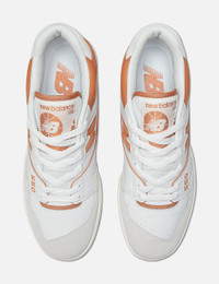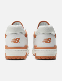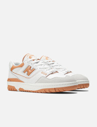 - New Balance - 550 - Leather and suede upper - Burnt Orange “N’ logo branding - Retro styles - Midsole cushioning - Padded collar - Lace-up closure - Rubber outsole - Style code: BB550LSC - Color: White/ Sepia/ Rain Cloud - Material: Leather, Suede, Rubber - See more Sneakers and Shoes