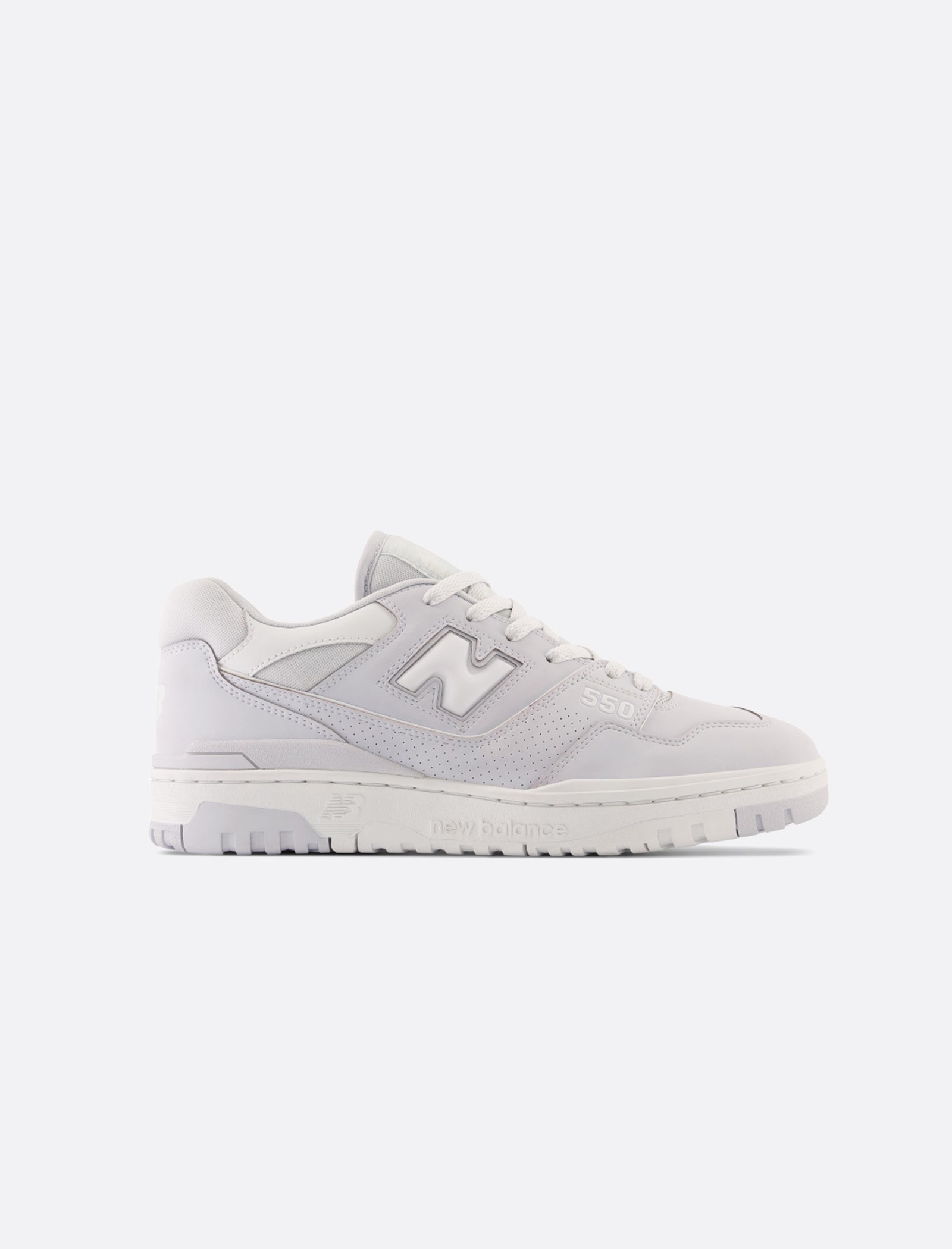Low top sneakers. Leather upper. Leather overlays around the toe, side panels, and heel counter. Cutout leather logos on the side panels. Front lacing. Mesh tongue, and collar. Printed logo on the heel. Rubber midsole. Rubber outsole. - Leather upper SKU: BB550HSB