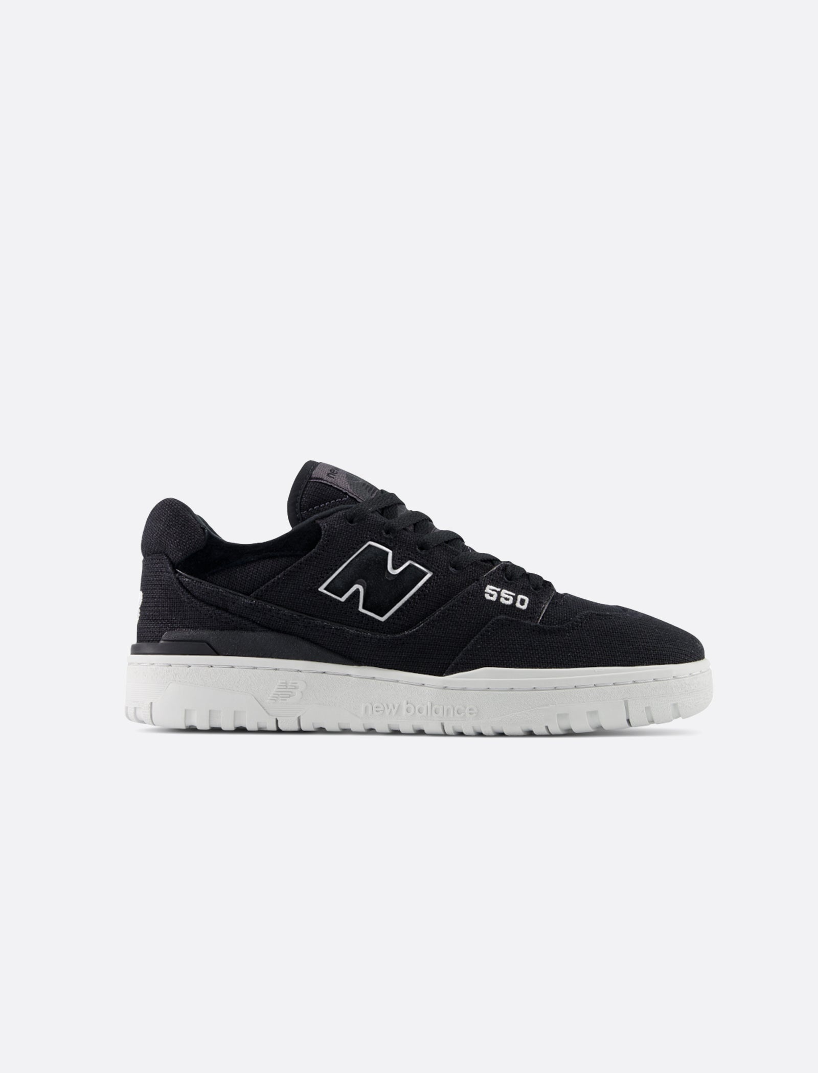 Low top sneakers. Hemp canvas upper. Hemp canvas overlays around the toe, side panels, and heel counter. Cutout Hemp canvas logos on the side panels. Front lacing. Hemp canvas tongue, and collar. Embroidered logo on the heel. Rubber midsole. Rubber outsole. - Hemp canvas upper SKU: BB550MDB