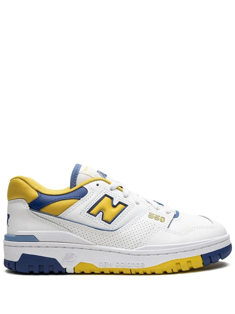 550 "LA Rams" sneakers These New Balance 550 are dressed in the signature colours of The LA Rams. Celebrating the NFL team, they are crafted from a white leather base and enhanced with blue and yellow accents throughout. Highlights - White/yellow/royal blue - Leather - Perforated detailing - Debossed logo to the side - Logo print to the rear - Round toe - Front lace-up fastening - Logo patch at the tongue - Branded insole - Rubber sole - These styles are supplied by a premium sneaker marketplace. stocking only the most sought-after footwear, they source and curate some of the most hard to find sneakers from around the world. Imported Composition Leather 100% SIZE & FIT Measurement HEEL 1.37 in(3.5 cm) Sole height 0.98 in(2.5 cm)