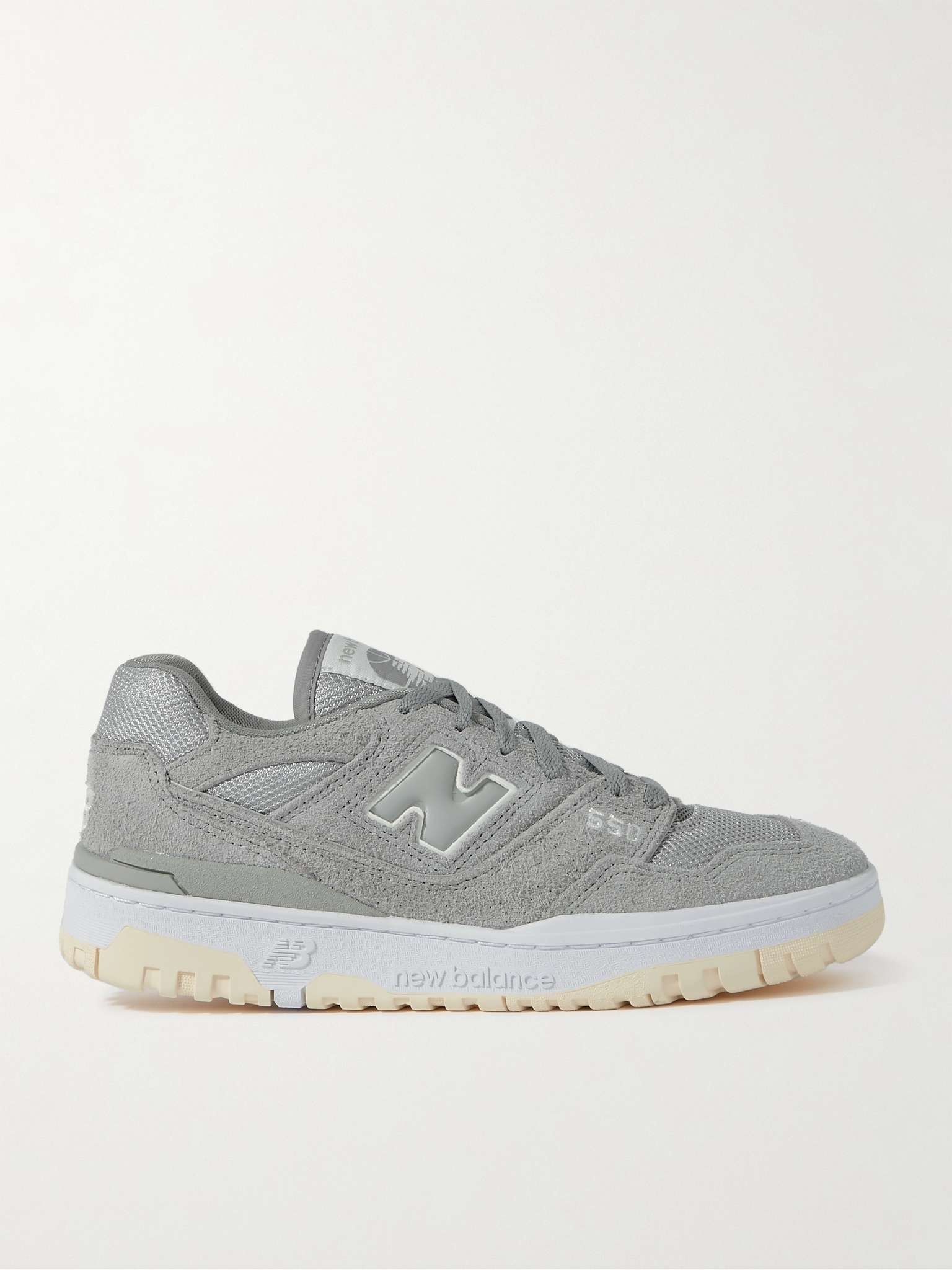 New Balance's '550' sneakers were created in 1989 with basketball players in mind. Returning from the archives, the style has made a comeback thanks to the rise of '90 fashion. This suede, mesh and leather-panelled pair has heavy-duty outsoles to ensure a comfortable stride, whether you’re catching some air on the court or the train on your commute. Size & Fit - UK 5 = US 5.5/ EU 38 - UK 5.5 = US 6/ EU 38.5 - UK 6 = US 6.5/ EU 39.5 - UK 6.5 = US 7/ EU 40 - UK 7 = US 7.5/ EU 40.5 - UK 7.5 = US 8/ EU 41.5 - UK 8 = US 8.5/ EU 42 - UK 8.5 = US 9/ EU 42.5 - UK 9 = US 9.5/ EU 43 - UK 9.5 = US 10/ EU 44 - UK 10 = US 10.5/ EU 44.5 - UK 10.5 = US 11/ EU 45 - UK 11 = US 11.5/ EU 45.5 - UK 11.5 = US 12/ EU 46.5 - UK 12 = US 12.5/ EU 47 - UK 12.5 = US 13/ EU 47.5 - UK 13.5 = US 14/ EU 49 - Packaging reflects both men’s and women’s sizing Details & Care - Tonal-grey suede (Pig), mesh and leather - Lace-up - Designer colour: Slate Grey - Style number: BB550PHD - New Balance follows its own size guide, therefore the size stated on the box will differ from the one provided in our size chart. To receive your correct fit, please refer to Size & Fit notes