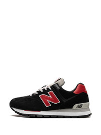 574 "Black/Red" sneakers One of New Balance’s most iconic and versatile styles, the 574, appears here in a "Black/Red" colourway. The panelled design features classic details such as the numbered logo patch on the tongue while the ‘N’ logo patch to the side acts as an unmissable branded finish. Highlights - Black/red - Suede - Panelled design - Logo patch to the side - Logo patch at the tongue - Round toe - Front lace-up fastening - Contrasting branded heel counter - Flat rubber sole - These styles are supplied by a premium sneaker marketplace. stocking only the most sought-after footwear, they source and curate some of the most hard to find sneakers from around the world. Imported Composition Sole: Rubber 100% Outer: Suede 100% Lining: Fabric 100%