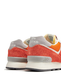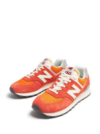 574 colour-block suede sneakers Highlights - Carrot orange/cream white/ash grey - Suede - Colour-block panelled design - Applique logo - Logo patch at the tongue - Contrasting branded heel counter - Round toe - Front lace-up fastening - Branded insole - Flat rubber sole Imported Composition Lining: Fabric 100% Sole: Rubber 100% Outer: Suede 100%, Mesh 100%
