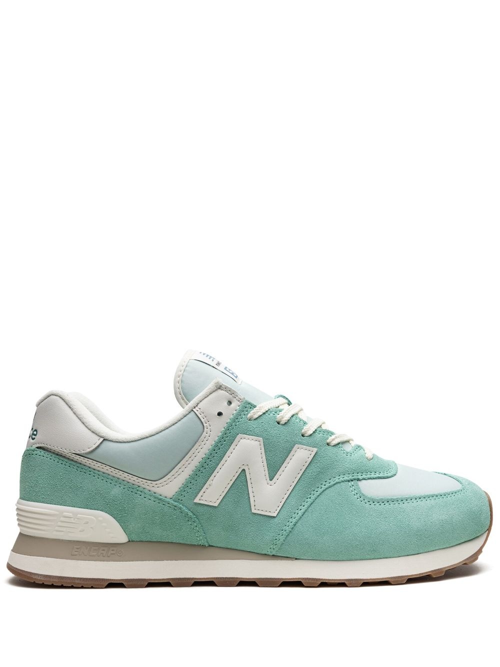 574 "Green" low-top sneakers One of New Balance’s most iconic styles, the 574 sneaker appears here in a bright green and white colourway. Its panelled design features classic details, such as the logo patch on the tongue, while the ‘N’ logo patch to the side acts as an unmissable branded finish. Highlights - Bright green/white - Suede - Mesh panelling - Logo patch to the side - Embroidered logo to the rear - Round toe - Front lace-up fastening - Branded insole - Rubber sole - These styles are supplied by a premium sneaker marketplace. stocking only the most sought-after footwear, they source and curate some of the most hard to find sneakers from around the world. Imported Composition Sole: Rubber 100% Outer: Suede 100%, Mesh 100% Lining: Fabric 100%
