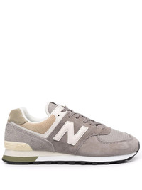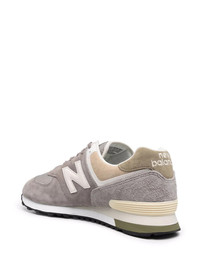 Grey suede 574 lace-up sneakers from NEW BALANCE featuring round toe, panelled design, front lace-up fastening, logo patch at the tongue, branded insole, branded heel counter and ridged rubber sole. Highlights - Grey - Suede - Round toe - Panelled design - Front lace-up fastening - Logo patch at the tongue - Branded insole - Branded heel counter - Ridged rubber sole Imported Composition outer: Suede 100%,Leather 100%,Fabric 100% lining: Fabric 100% sole: Rubber 100% Product measurements for size: 10 (US) Heel: 3 cm (1.2 in) Sole height: 2 cm (0.8 in)