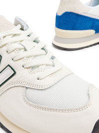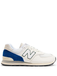 574 low-top sneakers Imagined in a white and blue colourway, the 574 sneakers are a NEW BALANCE iconic. The lightweight EVA foam cushioning in the midsole and heel increases comfort, while the ENCAP midsole cushioning delivers all-day support. Highlights - Cream white/navy blue - Leather/suede - Mesh panelling - Logo patch to the side - Logo-embroidered tongue - Round toe - Front lace-up fastening - Branded insole - Flat rubber sole Imported Composition Outer: Suede 100%, Leather 100%, Mesh 100% Lining: Fabric 100% Sole: Rubber 100%