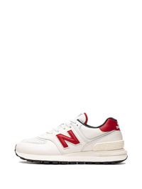 574 sneakers One of New Balance’s most iconic and versatile styles, the 574, appears here in the brand's Angora and Crimson colourway. The panelled design features classic details such as the numbered logo patch on the tongue while the ‘N’ logo patch to the side acts as an unmissable branded finish. Highlights - White/crimson - Leather - Panelled design - Logo patch to the side - Logo patch at the tongue - Perforated toebox - Round toe - Front lace-up fastening - Contrasting branded heel counter - Flat rubber sole - These styles are supplied by a premium sneaker marketplace. stocking only the most sought-after footwear, they source and curate some of the most hard to find sneakers from around the world. Imported Composition Sole: Rubber 100% Lining: Fabric 100% Outer: Suede 100% SIZE & FIT Measurement HEEL 1.6 in(4 cm) Sole height 0.8 in(2 cm)