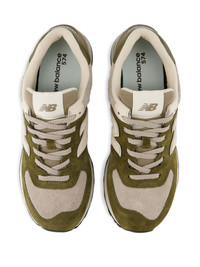 574 lace-up suede-panelled sneakers Highlights - Olive green and beige - Logo patch - Front lace-up fastening - Round toe - Ridged rubber sole - Panelled design Imported Composition Outer: Calf Suede 100% Lining: Fabric 100% Sole: Rubber 100%