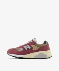The 580 beckons to the 90s with this updated silhouette. A soft burgundy suede overlays beige mesh and grey accents. A chunky EVA midsole is equipped with ROLLBAR technology and features hits of white, beige, and grey throughout. A sporty and nostalgic blast with balanced comfort, stability, and style. A retro rubber New Balance 580 logo patch at the shoe’s tongue completes the look. DETAILS & FEATURES - Suede and mesh rubber upper - EVA midsole - ROLLBAR technology - Fabric laces - Style-No.: MT580ECA ABOUT THE BRAND What started as an orthotic insole company in the 20's has now morphed into one of the most respected footwear brands on the planet. Additional to its reputation for running shoes, New Balance has always retained a strong credibility within certain scenes. The last remaining athletic footwear company to still be producing most of their footwear in New England and the US, New Balance hold strong in their 'Endorsed by No One' payoff, claiming a good shoe will out sell an advertised one.