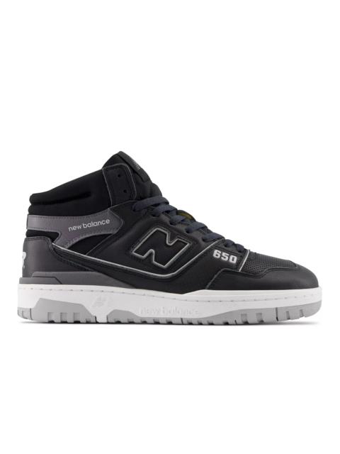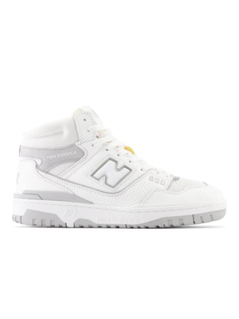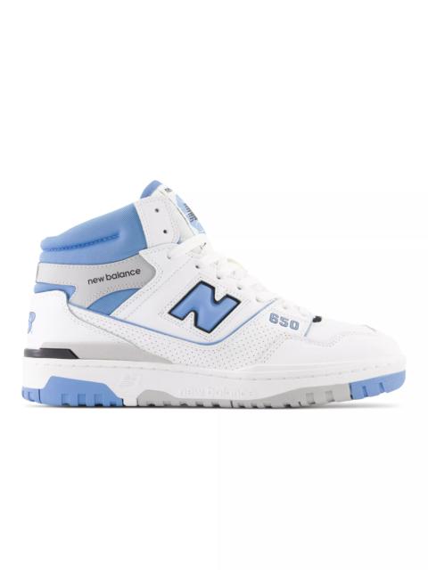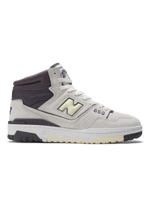 With the new 650 silhouette, New Balance introduces a hi-top counterpart to the wildly popular 550. While 1980s on-court design combined supportive features with epic proportions, the 650 offers a streamlined, ready to wear look. A classic, leather upper is bolstered with a puff and stitch collar, for a subtle reinterpretation of molded foam construction, while a raw edged leather eyerow applies the shoe’s elevated construction to every level of detail. Product Details Features - Basketball-inspired heritage design - Puff and stitch collar - Rubber outsole Size & Fit - Adjustable lace closure for a secure fit - 521 grams (18.4 oz) - Size & Fit Guide - Adjustable lace closure for a secure fit - Size & Fit Guide Material - Nubuck upper - Perforated leather underlays Style #: BB650RVP