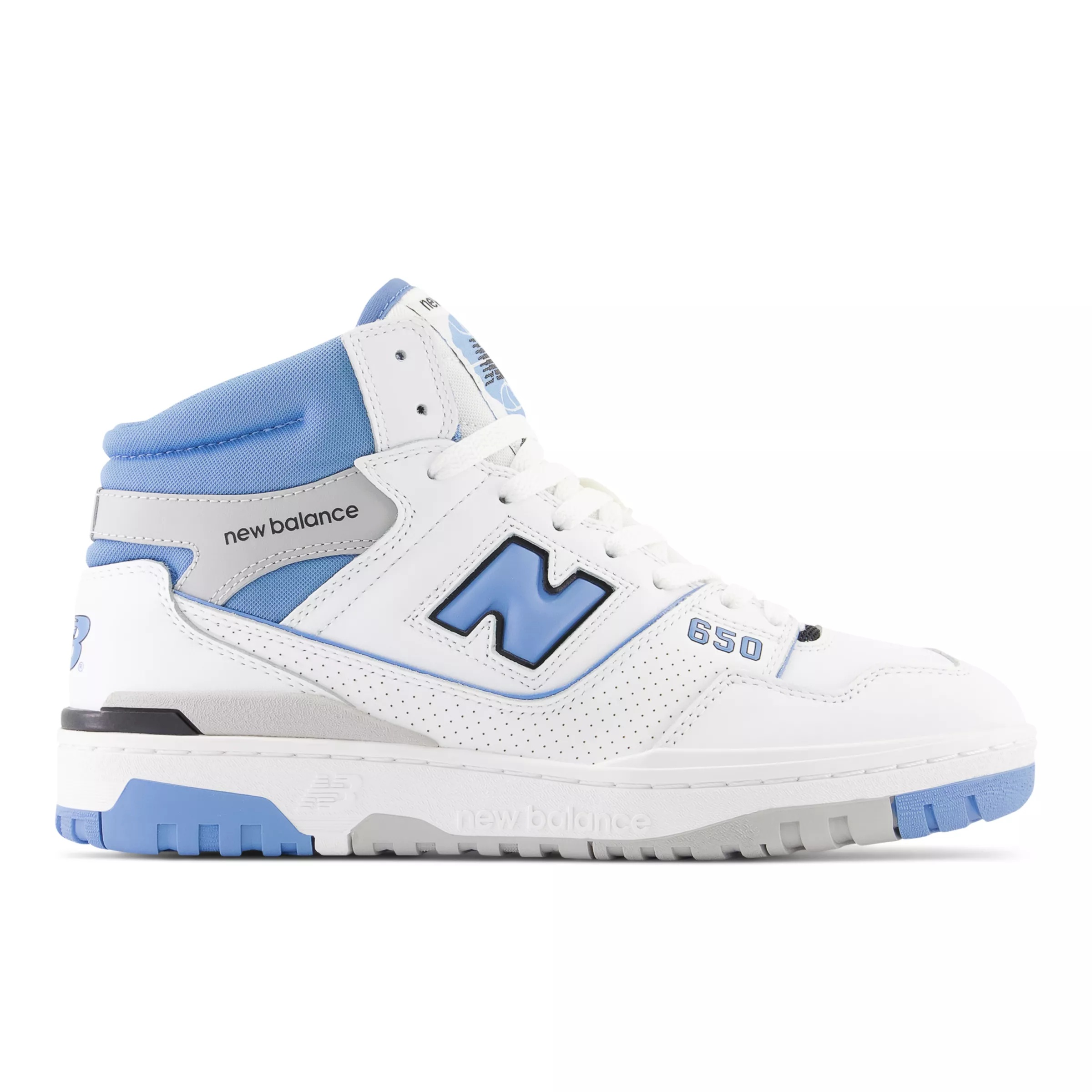 With the new 650 silhouette, New Balance introduces a hi-top counterpart to the wildly popular 550. While 1980s on-court design combined supportive features with epic proportions, the 650 offers a streamlined, ready to wear look. A classic, leather upper is bolstered with a puff and stitch collar, for a subtle reinterpretation of molded foam construction, while a raw edged leather eyerow applies the shoe’s elevated construction to every level of detail. Product Details Features - Leather upper - Puff and stitch collar - Raw-edged leather eyerow - Perforated leather overlay - Rubber outsole Size & Fit - 521 grams (18.4 oz) - Size & Fit Guide Style #: BB650RCK
