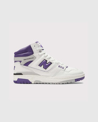 A high-top counterpart to New Balance’s wildly popular 550, the 650 combines 1980s on-court design with supportive features. The shoe delivers a streamlined, ready-to-wear look, featuring a classic leather upper with a perforated leather overlay and a puff and stitch collar that serves as a subtle reinterpretation of molded foam construction. The brand’s iconic N logo then tags the pair on the sides, as additional NB iconography emerges throughout including at the midsole, tongue, and heel. Size & Fit Order your regular size. Product Details Premium leather upper. Perforated leather overlay. Rubber outsole. Puff and stitch collar. Raw-edged leather eyerow. Leather N logo