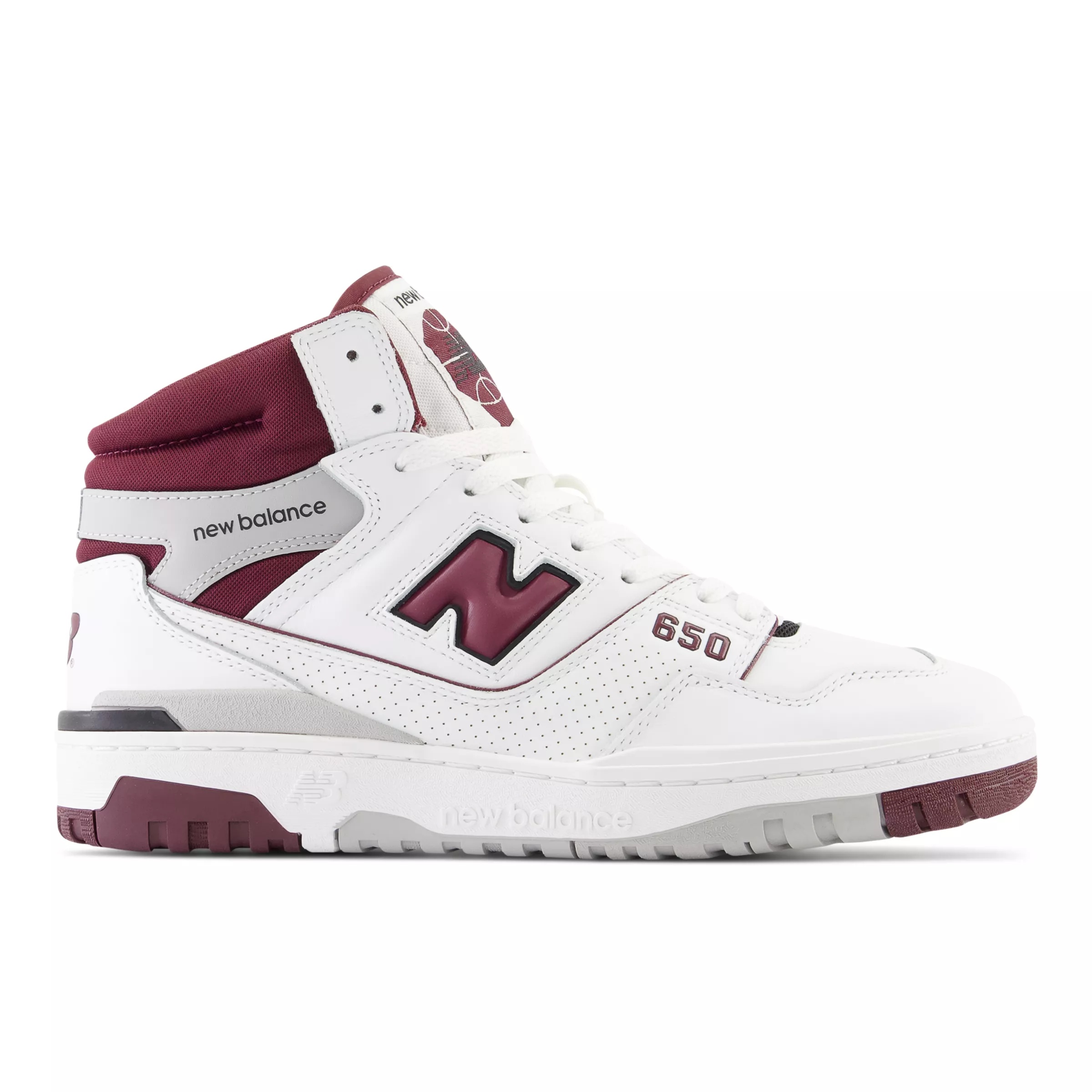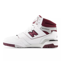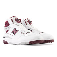 With the new 650 silhouette, New Balance introduces a hi-top counterpart to the wildly popular 550. While 1980s on-court design combined supportive features with epic proportions, the 650 offers a streamlined, ready to wear look. A classic, leather upper is bolstered with a puff and stitch collar, for a subtle reinterpretation of molded foam construction, while a raw edged leather eyerow applies the shoe’s elevated construction to every level of detail. Product Details Features - Leather upper - Puff and stitch collar - Raw-edged leather eyerow - Perforated leather overlay - Rubber outsole Size & Fit - 521 grams (18.4 oz) - Size & Fit Guide Style #: BB650RCH