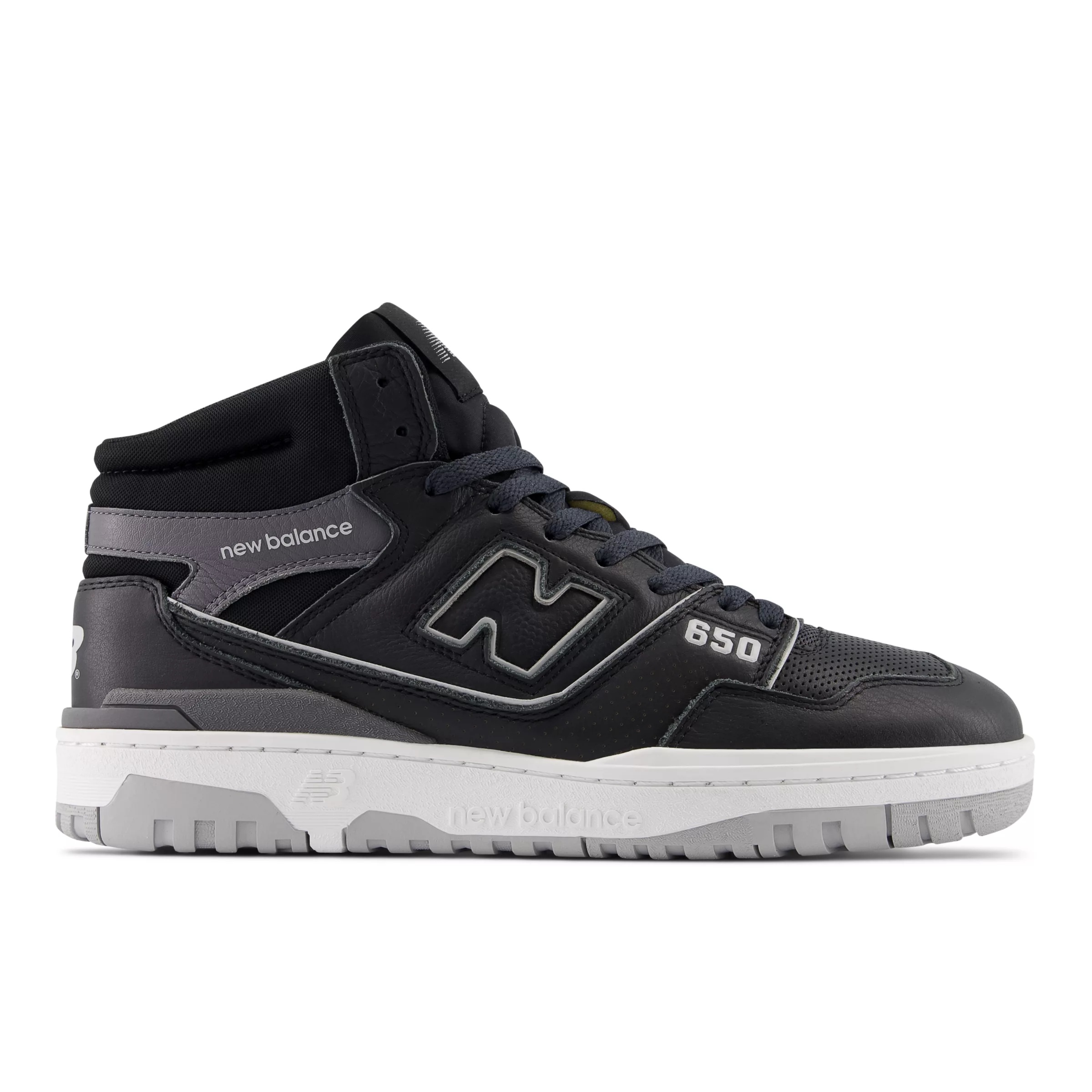 With the new 650 silhouette, New Balance introduces a hi-top counterpart to the wildly popular 550. While 1980s on-court design combined supportive features with epic proportions, the 650 offers a streamlined, ready to wear look. A classic, leather upper is bolstered with a puff and stitch collar, for a subtle reinterpretation of molded foam construction, while a raw edged leather eyerow applies the shoe’s elevated construction to every level of detail. Product Details Features - Basketball-inspired heritage design - Puff and stitch collar - Rubber outsole Size & Fit - Adjustable lace closure for a secure fit - 521 grams (18.4 oz) - Size & Fit Guide - Adjustable lace closure for a secure fit - Size & Fit Guide Material - Leather upper - Perforated leather overlay - Raw edged leather eyerow Style #: BB650RVB