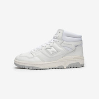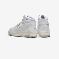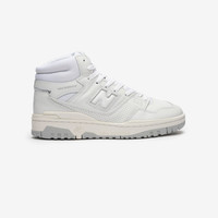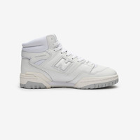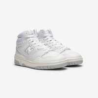 The New Balance 650 silhouette introduces a hi-top counterpart to the now well-known 550 low. The new version gives the 1980s on-court classic a streamlined update with leather on the upper, a puff and stitch collar, and a raw-edged leather eyerow finish. - New Balance 650 White - Leather upper - Puff and stitch collar - Perforated leather overlay - EVA midsole - Rubber outsole DETAILS Article no.: Bb650rww Color: White Gender: Unisex