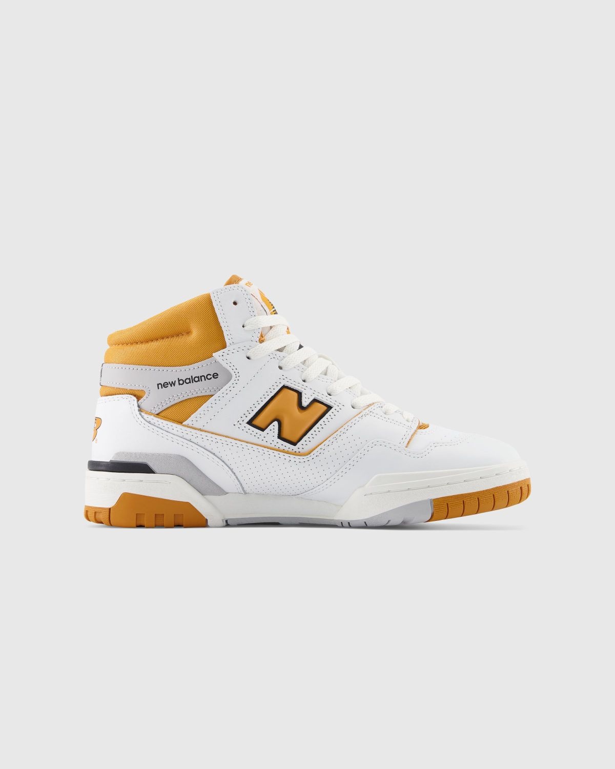 A high-top counterpart to New Balance’s wildly popular 550, the 650 combines 1980s on-court design with supportive features. The shoe delivers a streamlined, ready-to-wear look, featuring a classic leather upper with a perforated leather overlay and a puff and stitch collar that serves as a subtle reinterpretation of molded foam construction. The brand’s iconic N logo then tags the pair on the sides, as additional NB iconography emerges throughout including at the midsole, tongue, and heel. Size & Fit Order your regular size. Product Details Premium leather upper. Perforated leather overlay. Rubber outsole. Puff and stitch collar. Raw-edged leather eyerow. Leather N logo